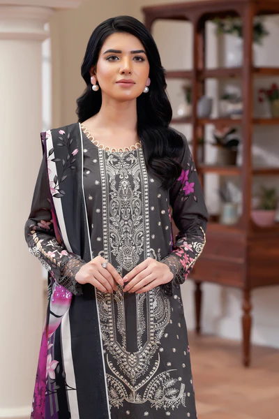 Description: Embroidered Dobby Stapple With Printed Shawl + Printed Trousers